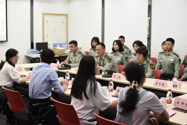 活动伊始,在南农大卫岗校区教学中心楼三楼会议室,举办了见面会及边防故事汇报会。万啸宇同志,来自新疆,曾获“精武杯”军事比武奖项,分享了他成长历程中,和在边境会晤站工作的军人父亲相处的点点滴滴,他向往着自己的孩子也能像如他一般崇拜父亲,站在同志们的面前自豪地介绍自己,将这份“军人的选择与热爱”延续,浓厚的家国情怀深深感染了与会成员,不少同学现场留下了感动的泪水。来自漠河的阳烨涵同志,进行了《最北最冷最忠诚》的主题分享,分享中,他抑制不住激动的心情,数次哽咽,打动了每位在场的同学。贾粤凡同志,父亲是一名飞行员,在十分危险的工作环境中拼搏奋进,曾立二等功等荣誉,父亲的精神品质对他产生了深刻的影响。还有其他同志分享了自己的母亲含辛茹苦拉扯自己长大成人的军人家属故事,也有祖孙三辈皆为军人的家族传承、红色基因延续的故事,等等。同龄人的故事让与会人员深受触动、印象极为深刻。