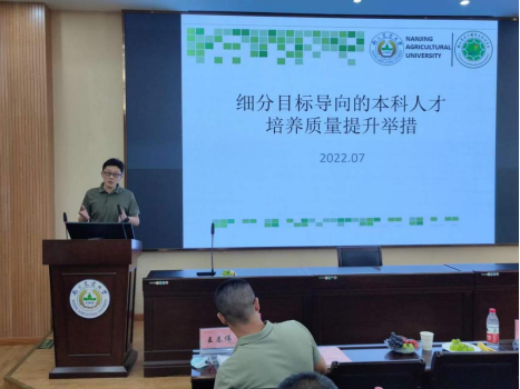 张兆同作“立足学科,聚焦优势和特色,提升人才培养质量”专题报告。他分析了学院的发展定位与人才培养特色,介绍了学院在本科与研究生招生、升学就业、优势专业等方面的现状,围绕人才分层培养、国际交流与合作、交叉学科设置等方面对人才培养模式进行了探讨。张兆同强调,在学院资源整合、特色凝练、优势课程开设、体现专业特色的学生培养等方面,需要全院教师集思广益,共同为人才培养质量提升而努力。