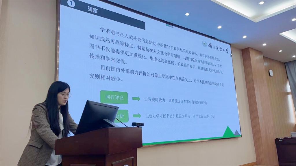 彭秋茹、南京工业大学图书馆金洁琴、江苏大学图书馆刘竟、东南大学图书馆黄思慧4位南农信息行业校友分别以“中文人文社会科学学术图书的影响力评价——以图书馆情报与文献学为例”“中文人文社会科学学术图书的学术影响力与社会影响力评价研究——以省哲学社会科学优秀成果奖为例”“学科演变视角下图书馆学概念知识元的识别”“Investigation and analysis of university library organizational climate in China”为题作学术报告,南京大学新濠天地赌场