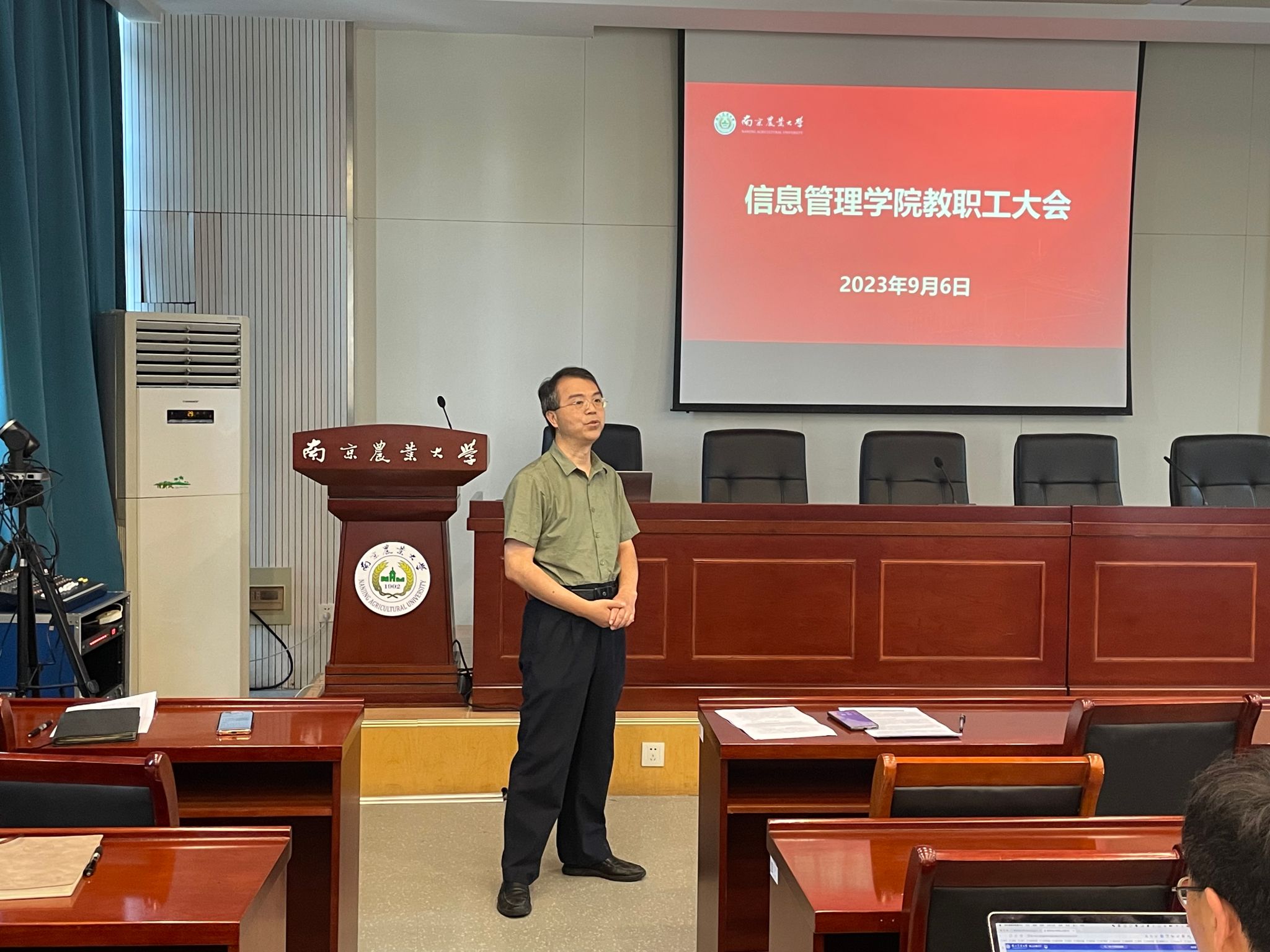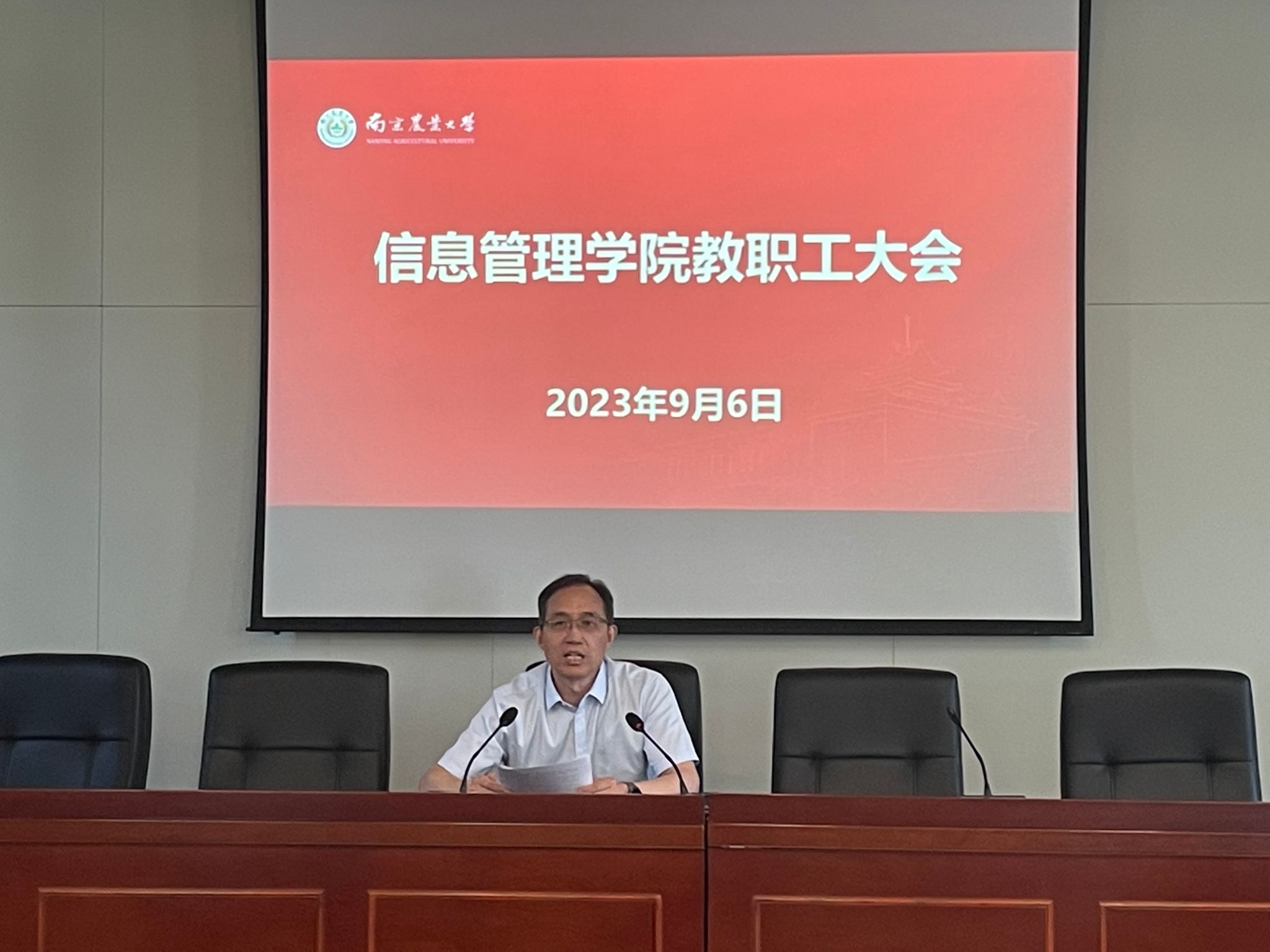 9月6日下午,学院在浦口校区育贤楼C502召开新学期工作会议,全体教职工参会,会议由党委书记郑德俊主持。