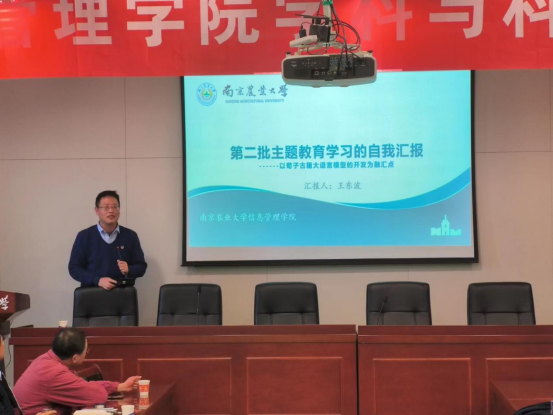 信息管理科学系王东波教授作《以荀子古籍大语言模型的开发为融汇点》主题报告,他首先汇报了自己参加学习贯彻习近平新时代中国特色社会主义思想主题教育的体会,他指出,以大语言模型为核心支撑技术的人工智能是促进国家高质量发展的关键要素之一,也是确保到2035年基本实现社会主义现代化的重要驱动力之一。随后,王东波着重介绍了所带研究团队持续10年深耕古籍文献数字化研究,开发荀子模型的背景、步骤与过程、特色与亮点、阶段性成果。他建议学院广大中青年教师,沉下心来发现真问题,借助新方法,潜心研究,专心攻关,力求新突破。