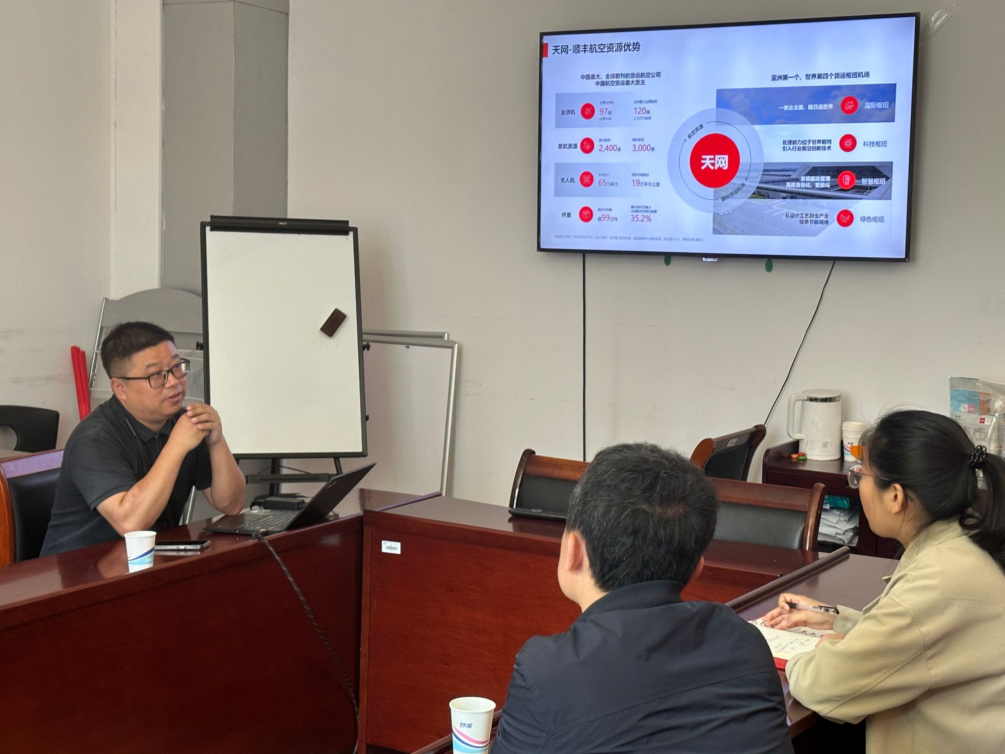 4月18日上午,学院与顺丰科技有限公司在育贤楼B211会议室开展交流座谈会。顺丰科技有限公司产业数字化市场总监潘迪华一行到访,学院党委副书记裴海岩、学工办副主任夏丽君参与座谈。裴海岩对潘迪华一行的到来表示欢迎。他从学院学科设置、人才培养、实习实践需求等方面做了详细介绍。潘迪华首先感谢了学院张兆同院长的关心和引进,介绍了顺丰科技有限公司的基本情况,并着重介绍了顺丰对未来供应链人才的需求、产学研合作等,他表示,希望双方在学生实习实践、行业企业导师聘任、项目共建、智慧供应链实验室共建等方面开展合作。随后双方就就业实习基地共建、校园招聘、供需对接等展开深入沟通。