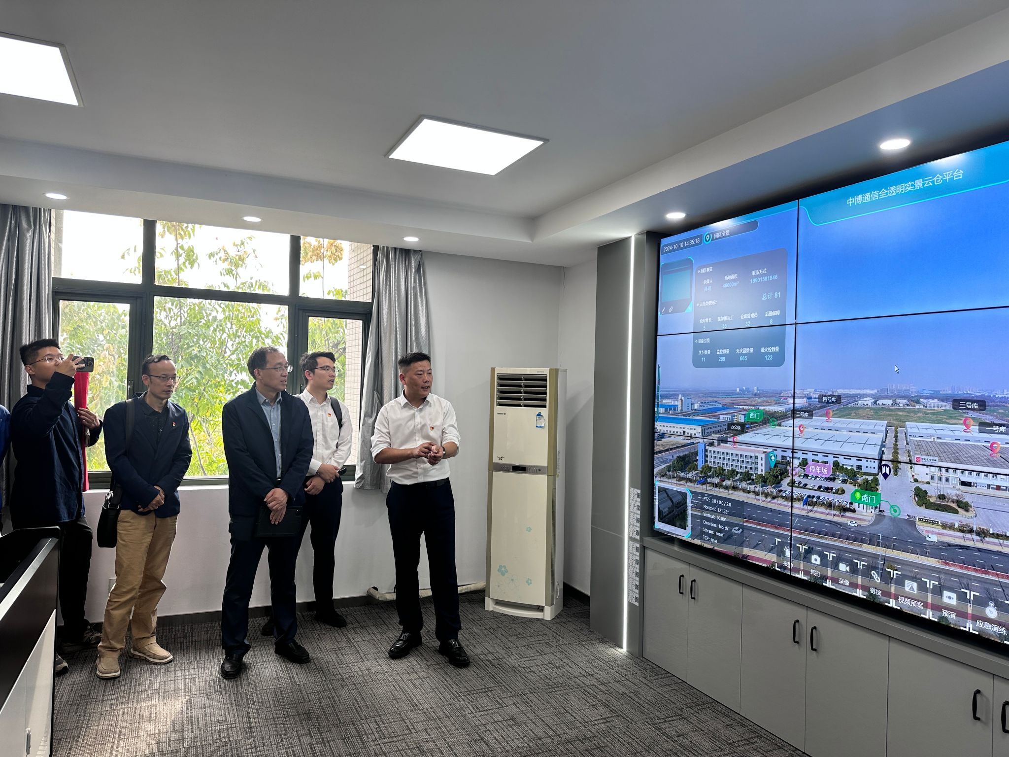 院长张兆同一行实地参观中国通信服务信息产业园,介绍产业园发展情况。
