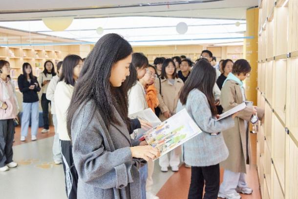 接着,师生步入少儿阅读空间。卡通造型的自助借还机、伴读玩偶、星空主题阅读帐篷……这些设计充分考虑到了少儿读者的认知特点与情感需求,体现了江北图书馆的人文关怀。在这里,每个年龄阶段的读者都能找到属于自己的阅读天地,享受阅读带来的乐趣与成长。同时,“夜书房”、“定山剧场”等特色区域,及结合新区产业的“产业阅览区”,彰显了江北图书馆作为全国首家国家图书馆共建馆,打造国家级新区公共文化服务样板的决心。