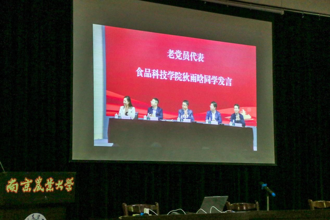 会议第四项,老党员代表食品科技学院狄雨晗同学发言。她先介绍了自己的入党经历,并表示将以实际行动践行党的理想和信念,为党的事业奉献出自己的力量,同时展望党的事业的美好未来,并表示将为之努力奋斗。