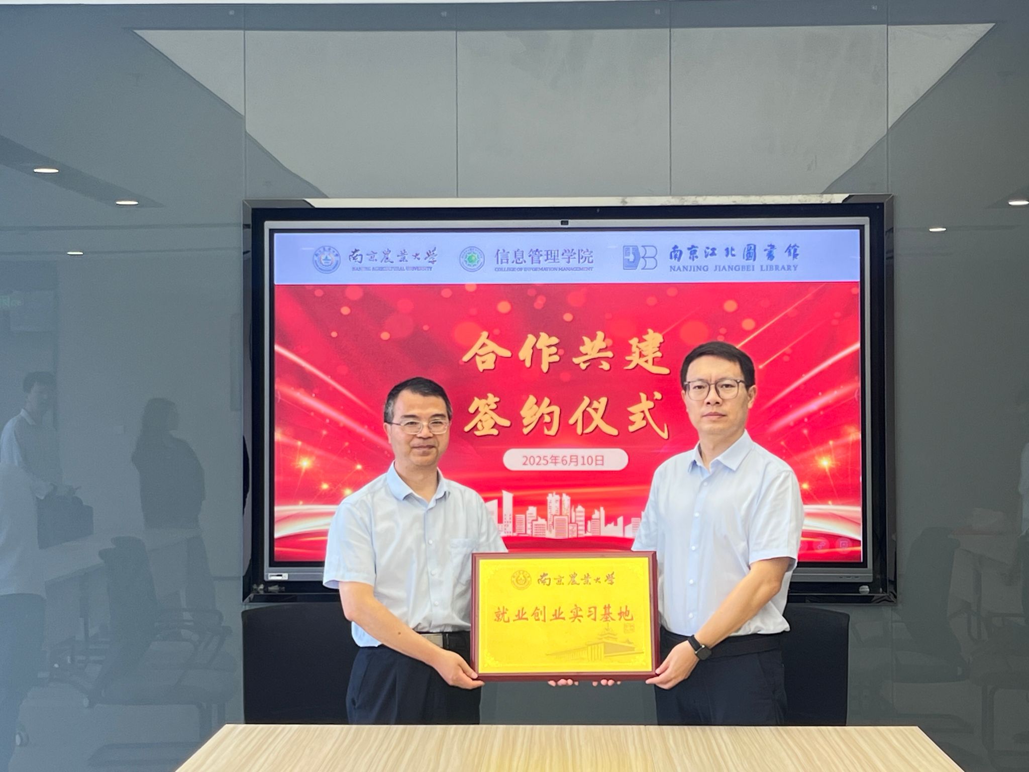 与南京江北图书馆举行合作共建座谈会,并签订就业创业实习基地、志愿服务与实践共建基地、研究生联合培养基地。