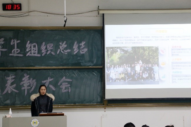 本次总结大会首先以工作汇报及成果展示开始,学生组织办公室代表朱安琪进行工作汇报,她就上半学期的工作任务、工作中收获的经验和开创未来部署下学期计划三个方面进行了汇报分享;团委代表储奕洋关于团委工作内容,学期工作反思成果及未来团委发展新期望做出汇报,她祝愿大家做信管院最响的号角;学生会主席钱进从五个方面对本学期的工作发表了总结,用“翻过那座山让世界听到你们的故事”鼓励大家积极向上勇敢生活。