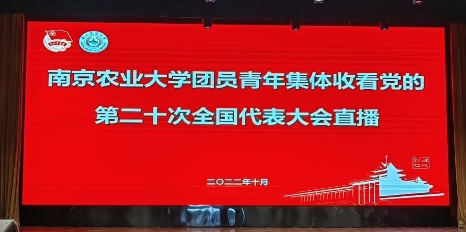 团学青年代表在浦口分会场大学生活动中心集中收看大会实况。