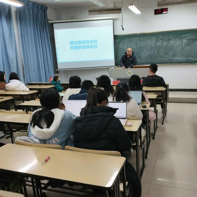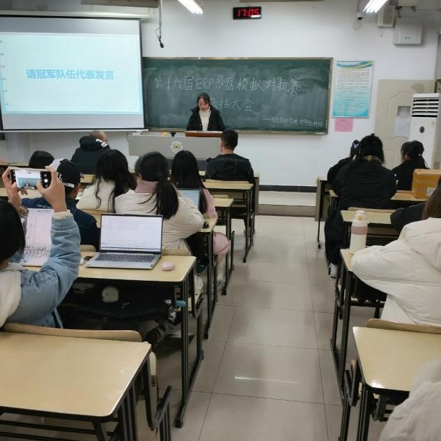 大学生科协于汇贤楼A202举行了第十六届ERP沙盘模拟对抗赛总结大会。大赛指导老师朱国宗、郑澍坤,各获奖队伍代表以及对ERP沙盘模拟对抗赛兴趣浓厚的同学们到场参加了本次大会。