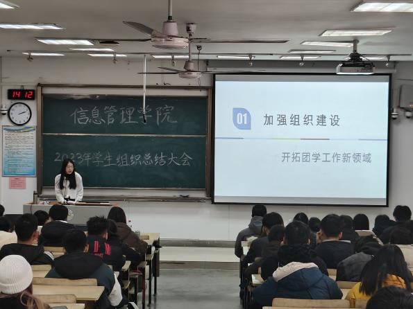 本次大会共设三项议程,依次为辅导员代表进行2023年学生组织工作总结发言、八大学生组织主要负责人进行2023年工作总结汇报、八大学生组织干事代表进行本学期工作学习总结汇报。