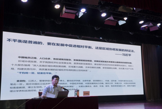 袁羽钧教授在报告中,用生动有趣的语言、喜闻乐见的方式、详实的资料和丰富的素材从区域协调发展战略、主体功能区战略、区域发展重大战略、新型城镇化战略几个方面阐述讲解新时代中国区域发展战略,总结了改革开放前后中国区域发展战略的演进。